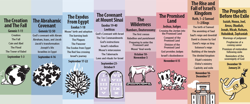 Anyone stumbling through Levitical laws? We know--some sections can be less-than-stimulating! You can get through it! If you need a little illumination around all the things that The Lord told Moses, The Bible Project has wonderful videos that will review each book of the Bible, as well as broad overviews and videos that delve into a specific theme. The links to the book overviews are available HERE, and they are a great way to catch up with readings that you may have missed. There are also links to "posters" which give a broad overview of each book. These will also be available in the lobby on Sunday mornings. HERE you will find a multitude of other resources to help you with the reading plan, including videos, podcasts, and articles to bring greater insight to what you have read. You will also find recaps and summaries of sections for times when you may fall behind. Keep up the good work!